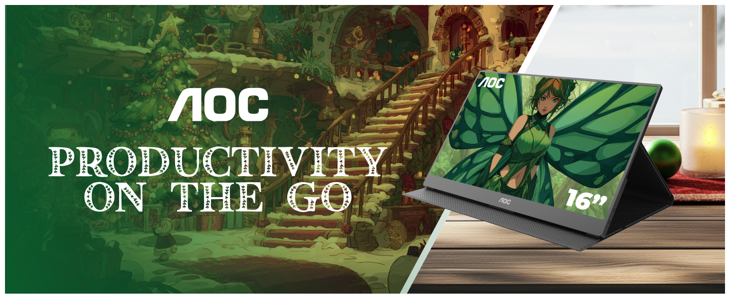 The AOC 16T20 is a 16" (15.6" viewable screen) Full HD portable touchscreen monitor with USB-C, Mini HDMI, and headphone connectivity. Its slim design, IPS panel, and Low Blue Light tech make it ideal for work, travel, and multitasking. Features include a foldable stand, VESA mount, and Smart UI controls.
