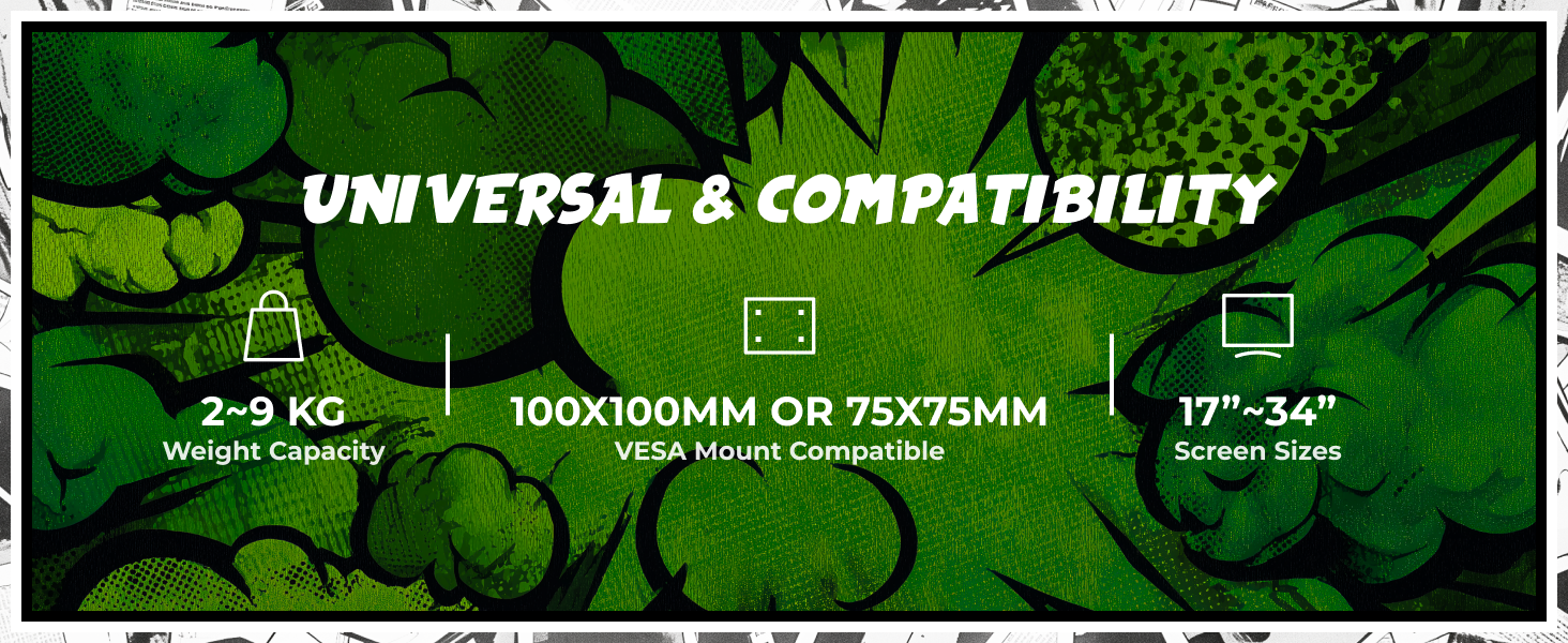 Supports Two 17"–34" Monitors (2–9 kg each)