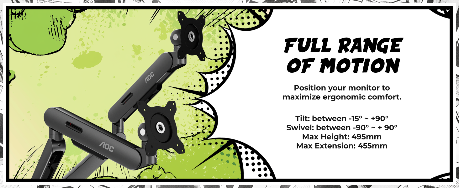 Independent Arm Adjustment with 250mm lift and 470mm extension