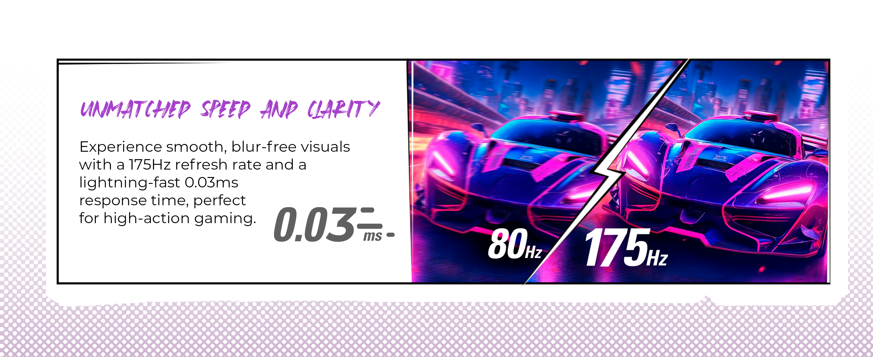 - 175Hz Refresh Rate & 0.03ms GtG for ultra-smooth, blur-free performance
