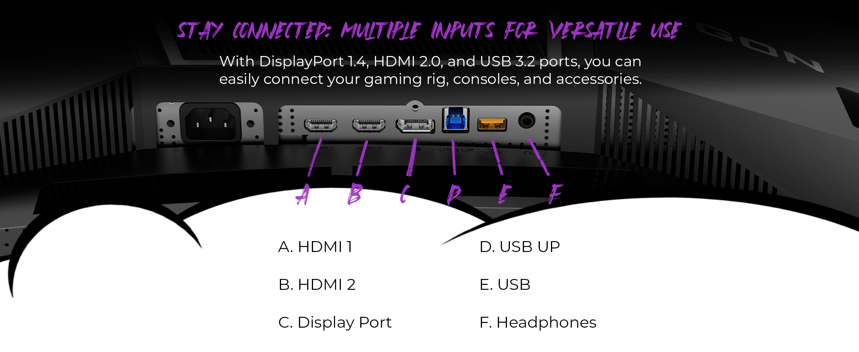 - Flexible Connectivity: DisplayPort 1.4, HDMI 2.0, USB 3.2