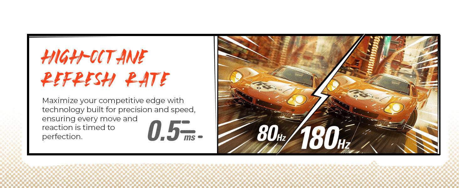 - 180Hz Refresh Rate & 0.5ms Response Time for ultra-smooth, responsive play