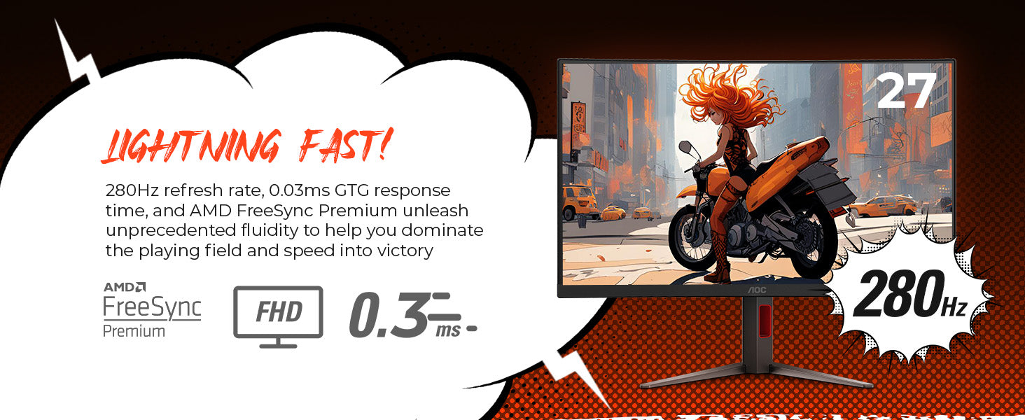- 280Hz Refresh Rate & 0.3ms Response Time for ultra-fast performance