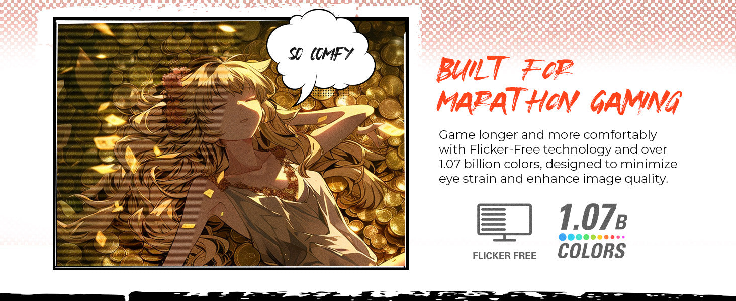 - Adaptive Sync & Flicker-Free tech for smooth, eye-friendly gaming