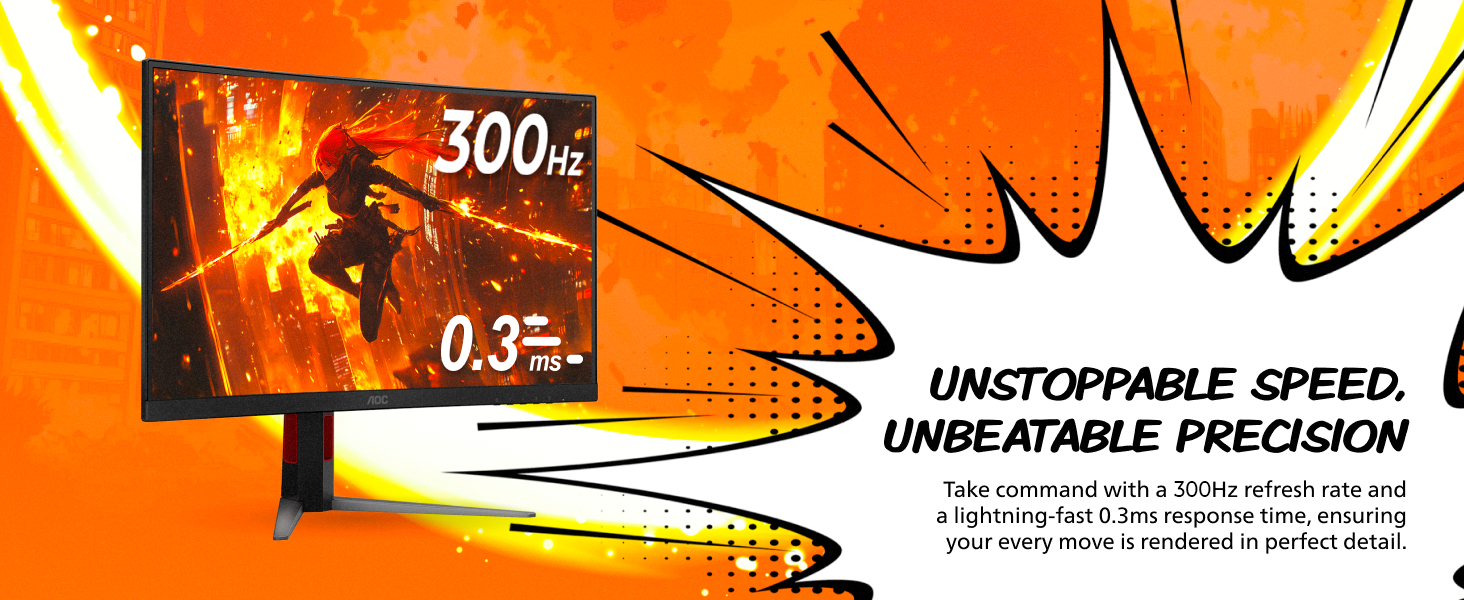 - 300Hz Refresh Rate & 0.3ms Response Time for elite-level speed