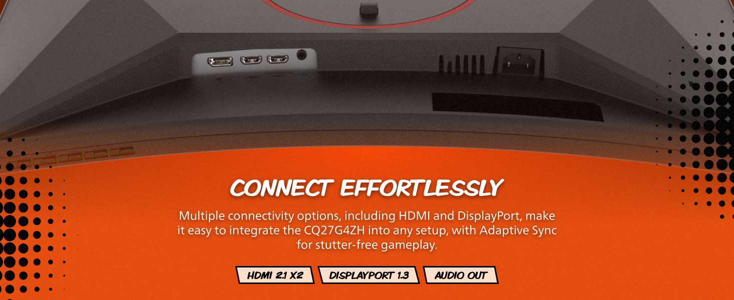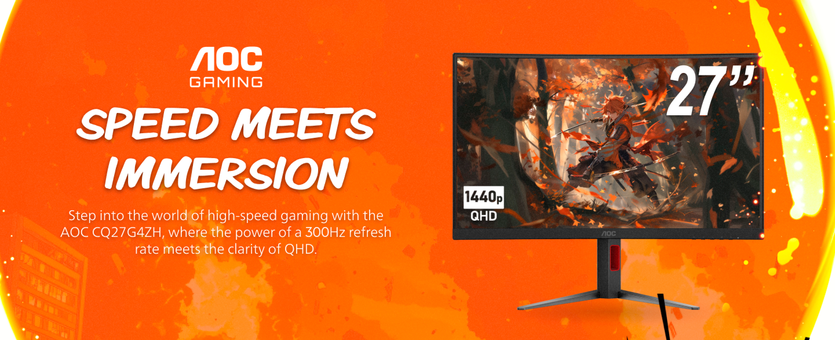 Dominate fast-paced titles with the CQ27G4ZH - featuring a 27" QHD curved screen, ultra-responsive 300Hz refresh rate, and 0.3ms response time. HDR visuals, Adaptive Sync, and a 1500R curve enhance every frame, while ergonomic and VESA compatible design ensures a personalized setup.