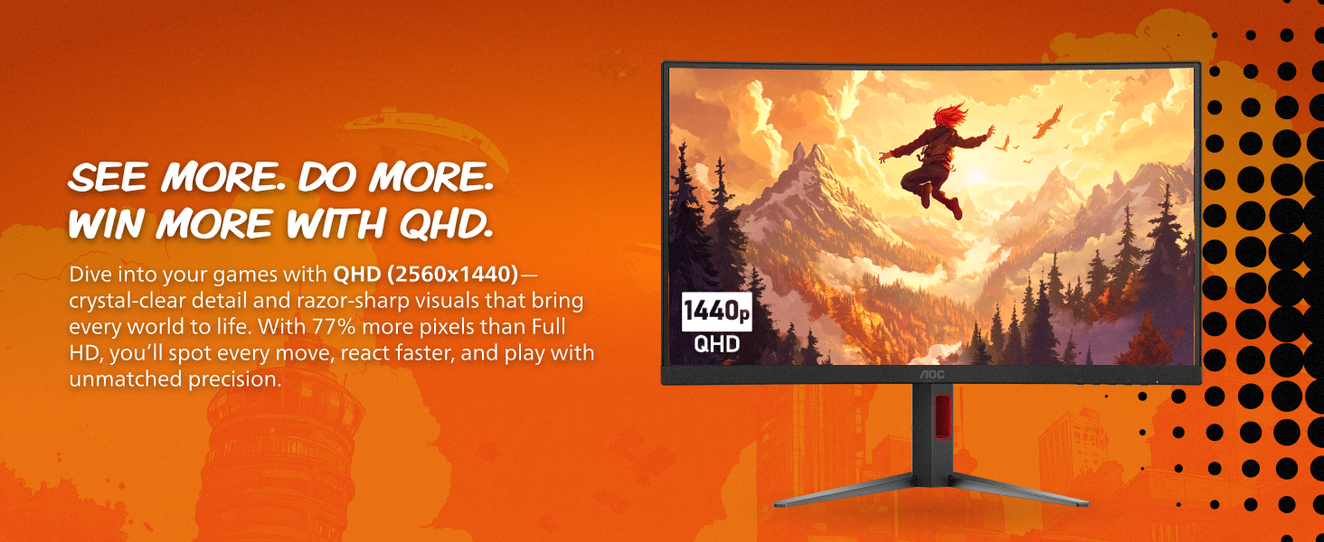 - 27" QHD 1500R Curved Display (2560x1440) for immersive clarity